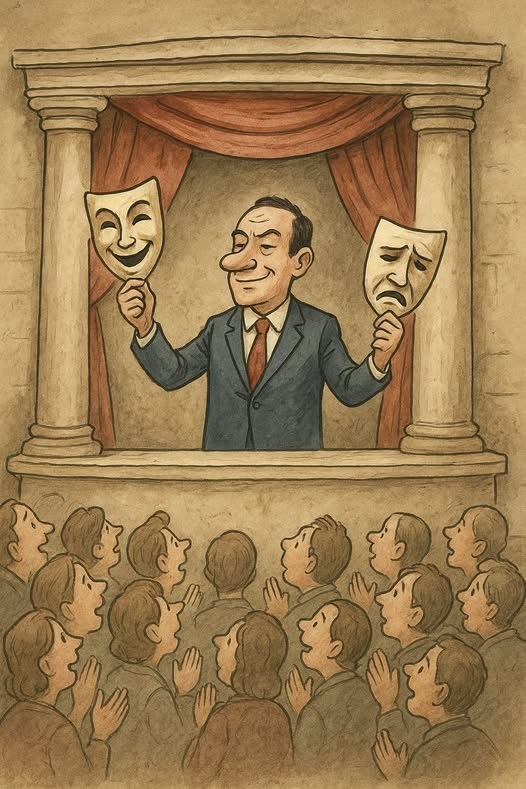 Hoy, los escenarios se llaman parlamentos y los actores llevan corbata, escaño o micrófono. Han perfeccionado la técnica del “drama político”, donde cada discurso se ensaya como una función y cada gesto se calcula como en un guion televisivo.