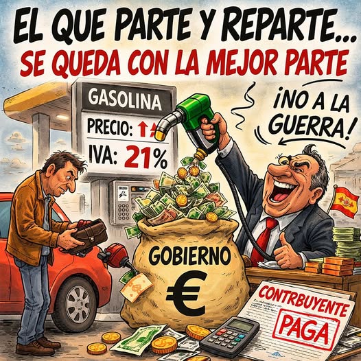 Porque claro, cuando la gasolina sube, también sube el IVA. Y cuando sube el IVA, sube la recaudación. Y cuando sube la recaudación… alguien debe de pensar en algún despacho que todo está funcionando perfectamente.