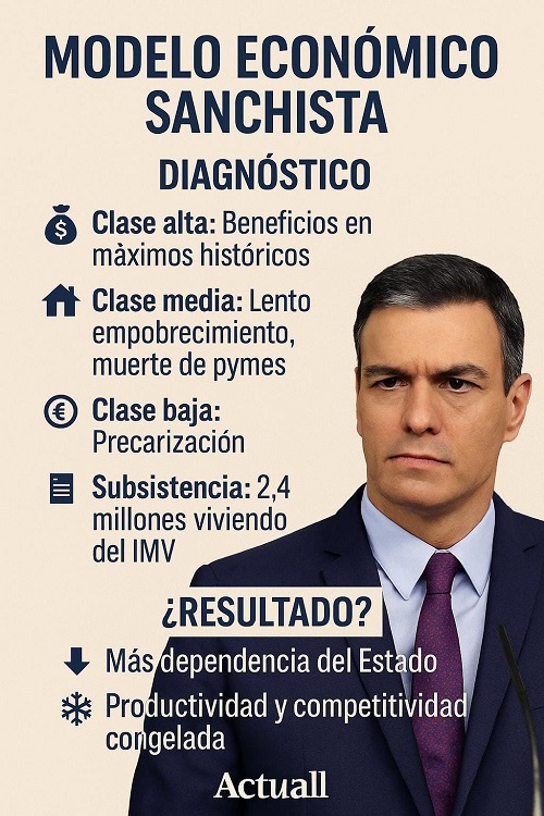 Las grandes empresas, encantadas con la llegada de nuevos consumidores que -además- no tienen mentalidad de propietarios sino de inquilinos. Y eso significa más consumo y menos inversión. El mejor de los escenarios para el capital: una sociedad de usuarios en lugar de propietarios. Ni una crítica al wokismo y al autoritarismo sanchista. Y viceversa… Sánchez ya controla Telefónica con nuestro dinero y se codea con el gran capital.